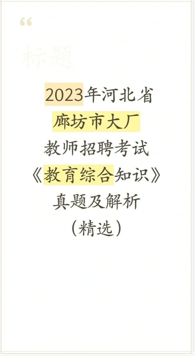23年廊坊市大厂教师招聘考试教综真题及解析