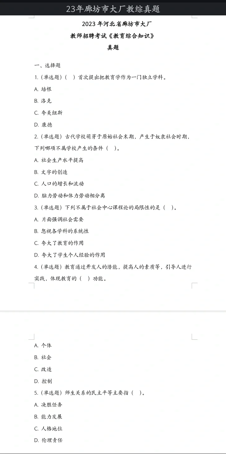 >23年廊坊市大厂教师招聘考试教综真题及解析