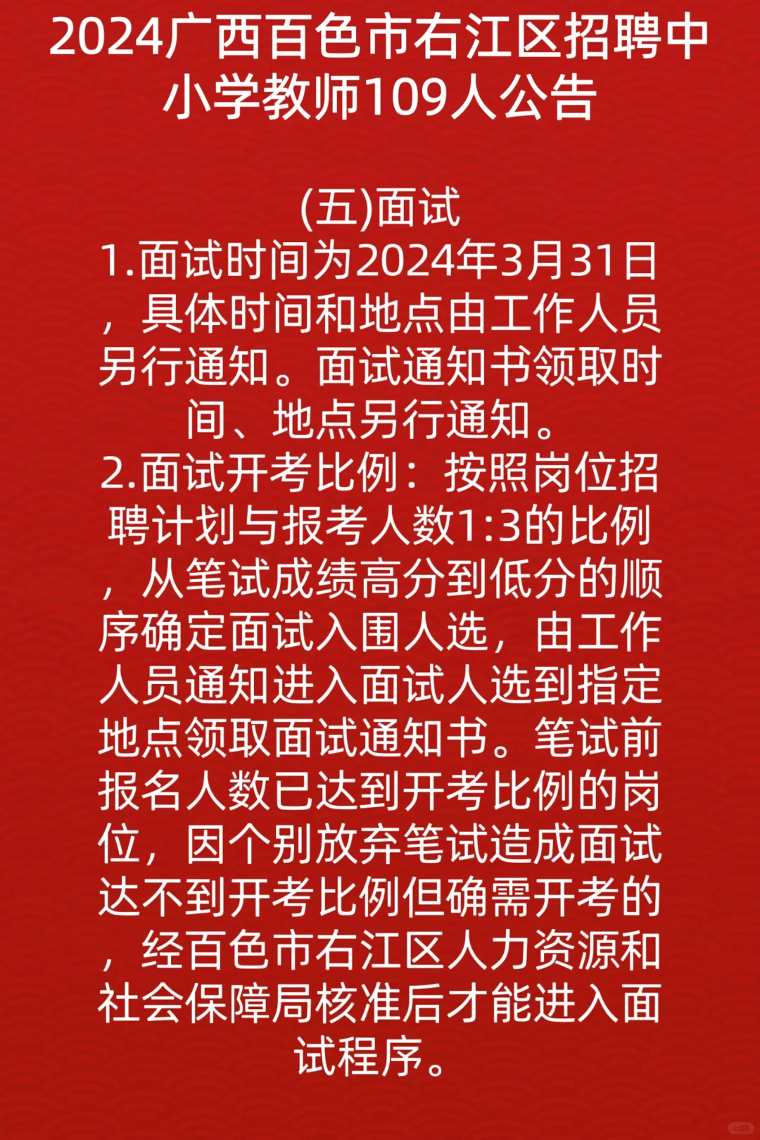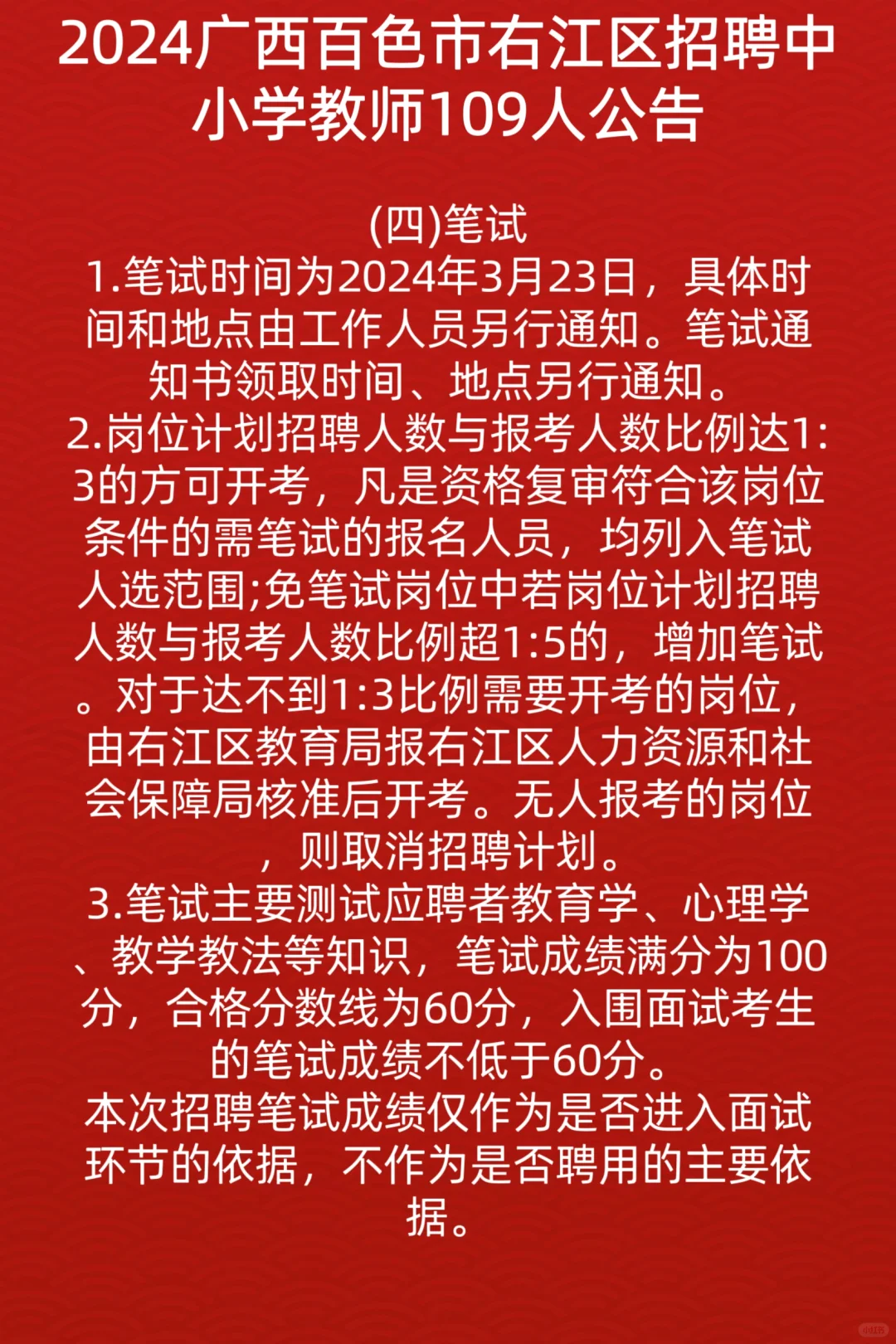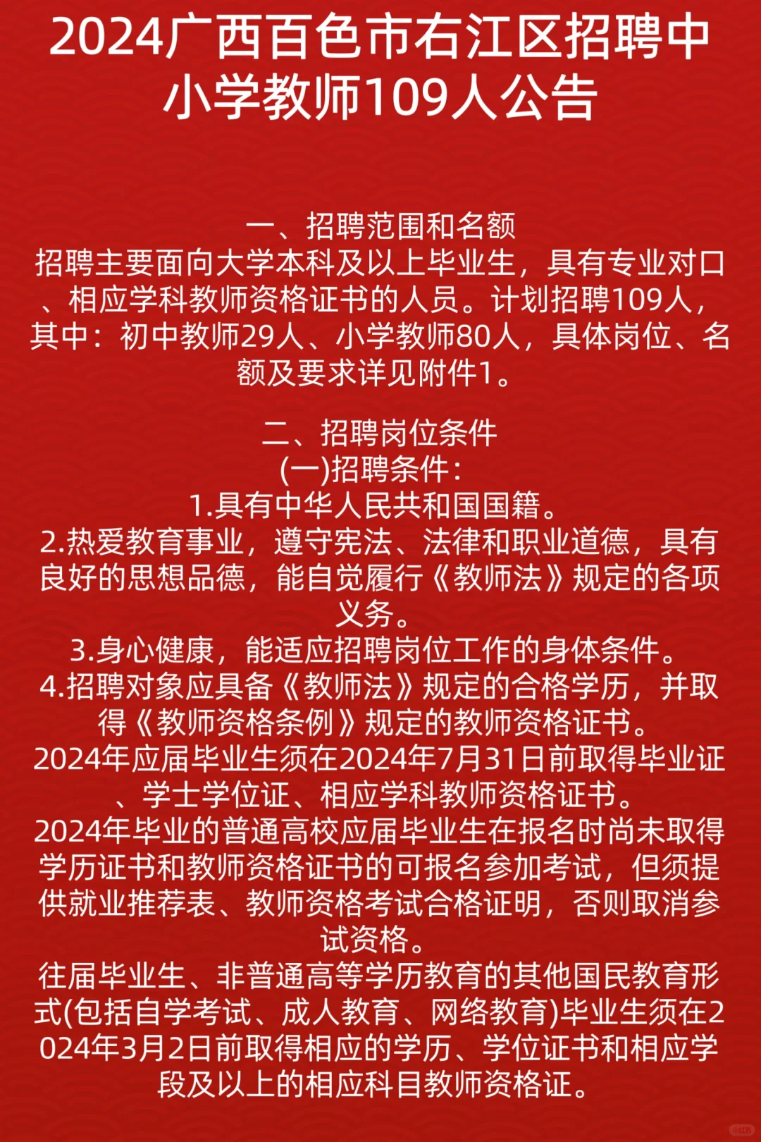 百色市右江区24年招聘中小学教师109人~ [爆炸R]出啦!招109人! [爆炸R]2024百色右江区招聘中小学教师 [爆炸R]报名时间:2024年3月2日9:00—16:00 [爆炸R]笔试时间:2024年3月23日 [爆炸R]面试时间:2024年3月31日 #中小学教师 #编制 #高校教师招聘考试 #教育 #教师招聘面试 #高校教师备考 #教师编 #广西教师 #中公教育 #初中教师 #小学教师 #教育学 #心理学 #教学教法 #百色招聘 #教师招聘 #教师招聘备考 #教师招聘考试 #教师 #教师编 #幼儿园 #高中 #在编教师 #语文 #数学 #地理 #历史 #生物 #英语 #音乐 #教师编制 #2024教师招聘 #2024百色教师招聘 #广西教师编 |