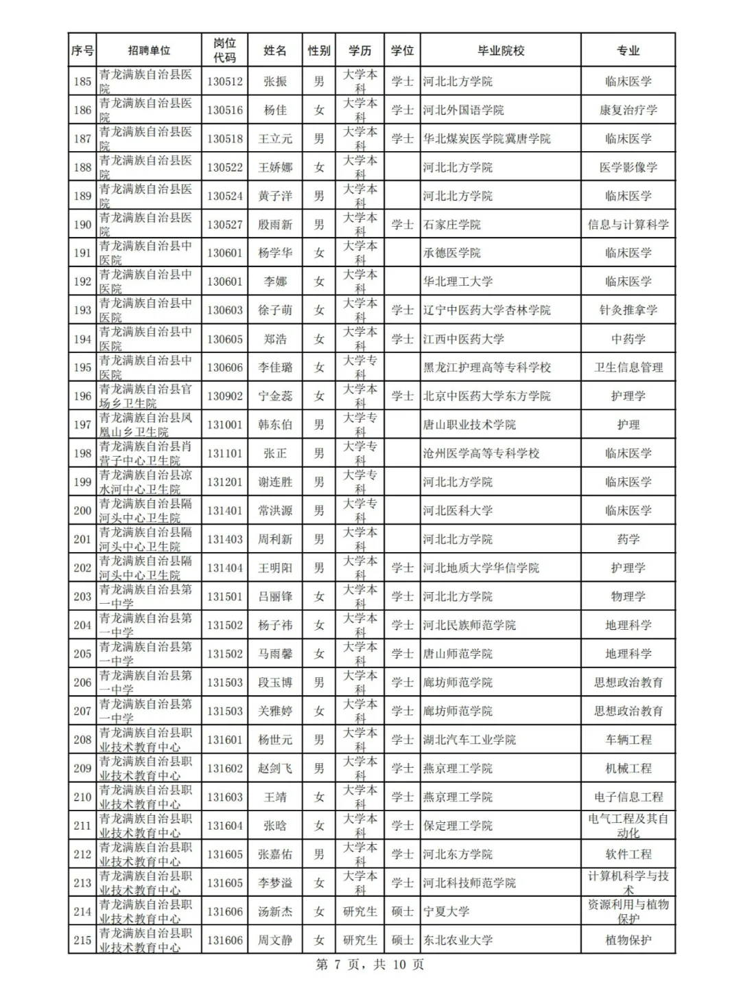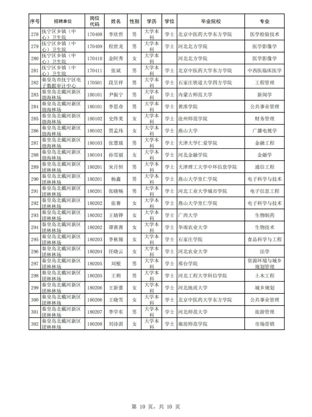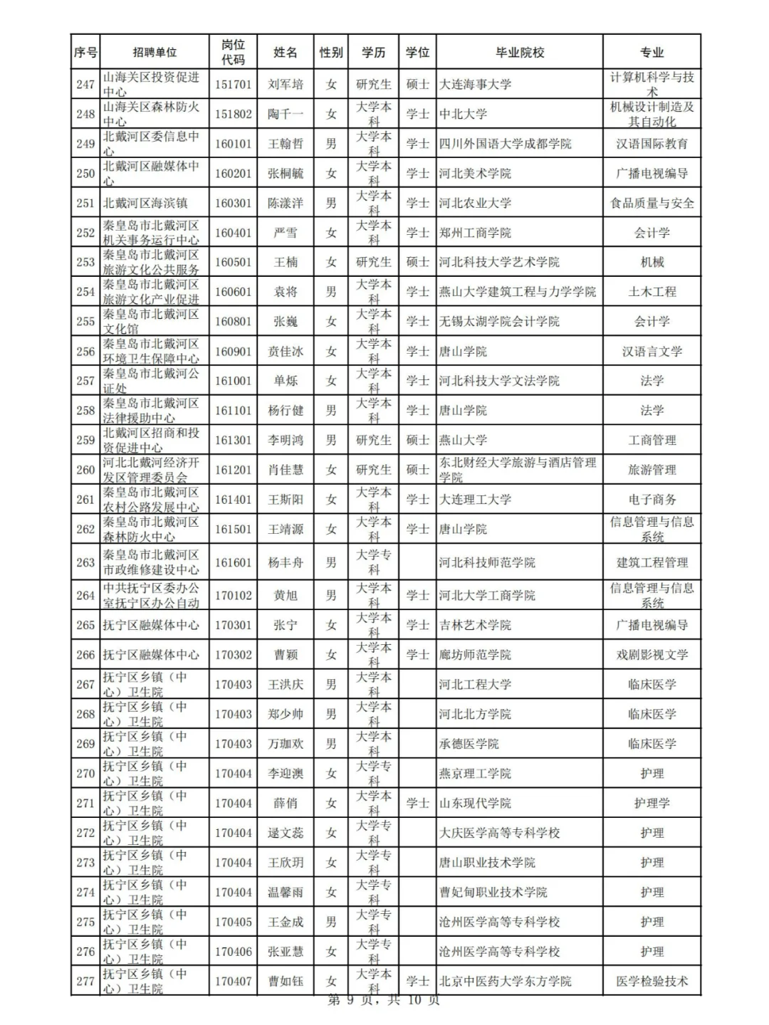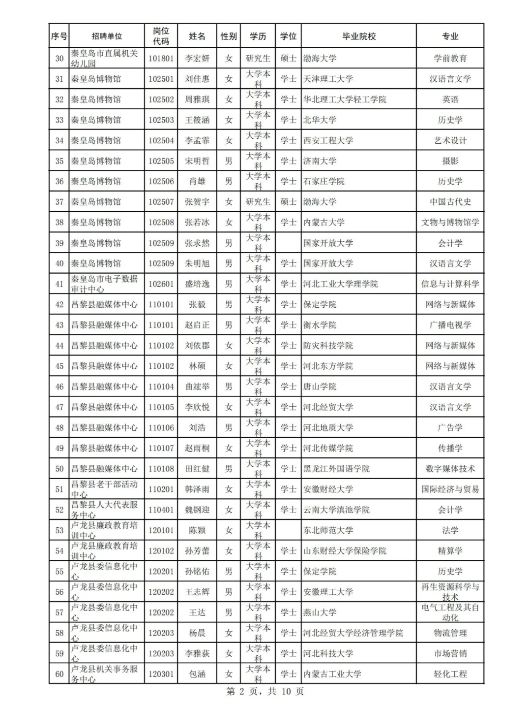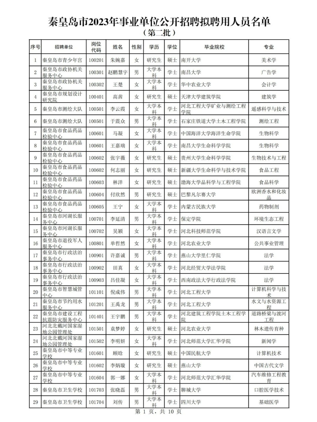秦皇岛市2023年事业编拟聘用人员名单公示二
