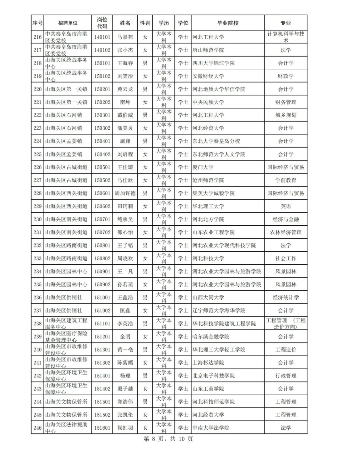 >秦皇岛市2023年事业编拟聘用人员名单公示二