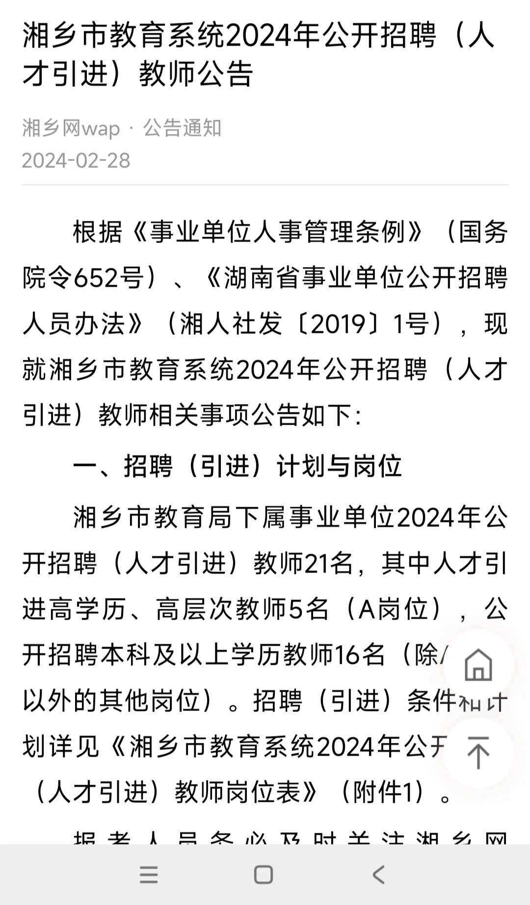 湘潭市湘乡市发布人才引进计划,本科起报,有人才补贴