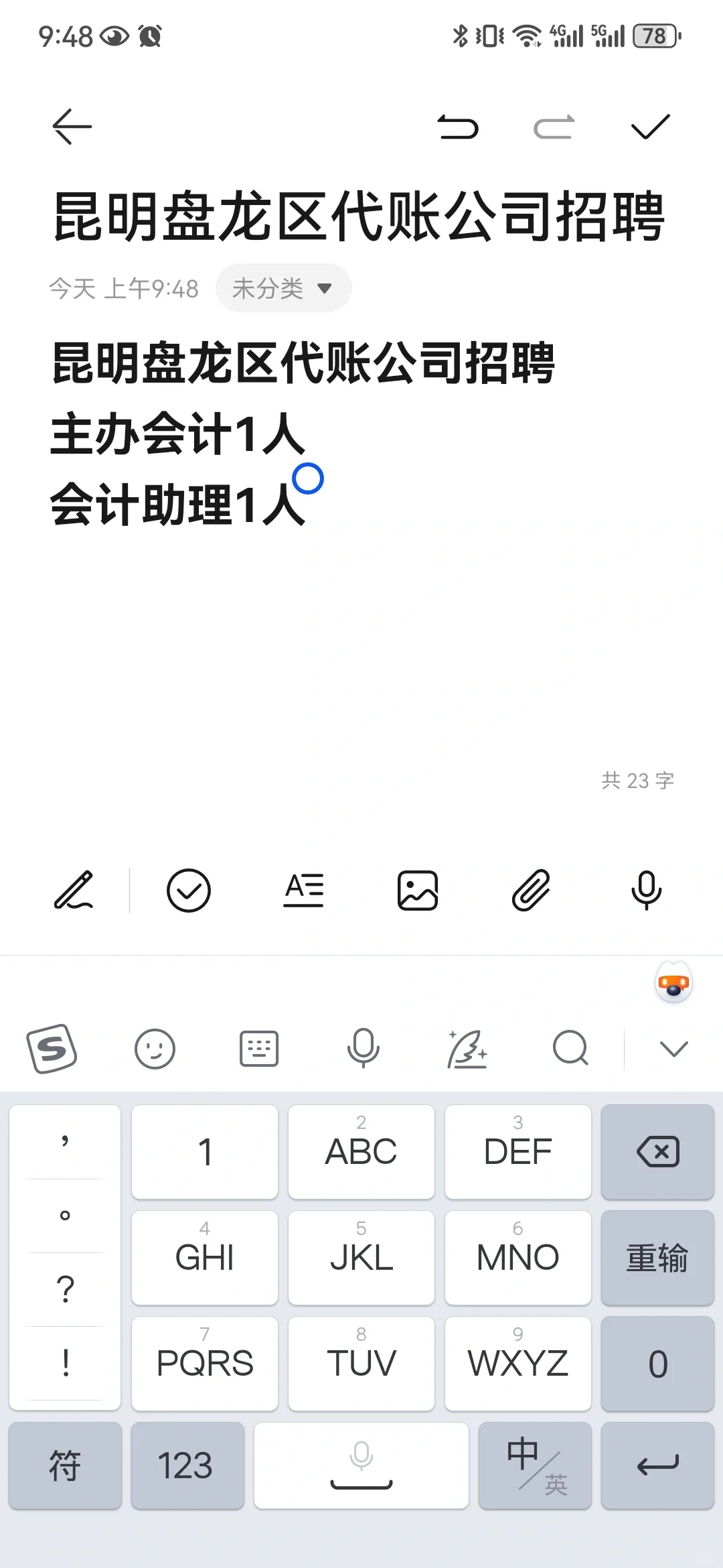 昆明市盘龙区代账公司招聘 代账公司招聘 一、主办会计 工作职责: 1.负责管辖内不同行业公司的会计凭证录入审核及装订,依据会计准则进行账务处理,申报纳税。 2.开具发票,日常客户工作对接等。 3.负责与税务等部门的对外对接工作。 任职要求: 1.必须要有助理会计师证书,有中级会计职称优先,3年以上财务工作经验。 2.能独立做账报税一般纳税人和小规模纳税人。 3.有一定的亲和力,为人正直,较强的责任意识和敬业精神。 4.逻辑清晰,耐心,细心,有良好的沟通表达能力。 5.熟练操作excel,word等办公软件,熟练电脑基本操作。 6.具有服务意识,能适应工作压力。 薪资待遇:7000-10000 二、会计助理 工作职责: 1.协助会计主管完成账务处理,纳税申报,外出办事等工作。 2.开具发票。 任职要求: 1.必须要有助理会计师证书,一年以上财务工作经验。 2.能独立做账报税小规模纳税人优先。 3.有一定的亲和力,为人正直,较强的责任意识和敬业精神。 4.逻辑清晰,耐心,细心,有良好的沟通表达能力。 5.熟练操作excel,word等办公软件,熟练电脑基本操作。 6.具有服务意识,能适应工作压力。 薪资待遇:3000-5000 上班时间:早上8点半-12点,下午1点半-6点,周末双休,节假日正常放假 #高薪工作 #工作 #昆明代理记账 #昆明找工作 |