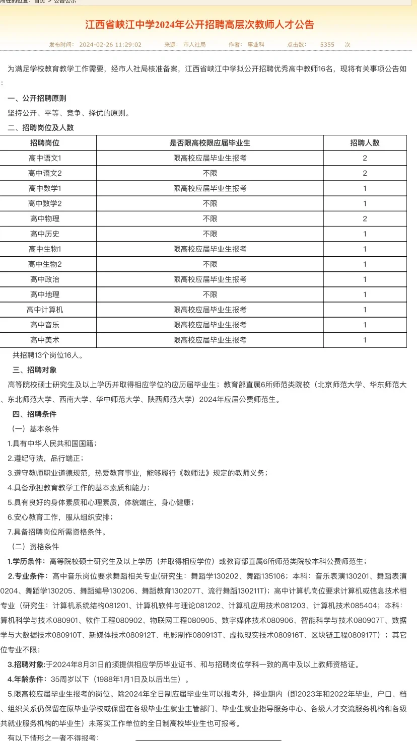 井冈山大学附属中学:报考时间自本公告发布之日起至2024年3月14日止。