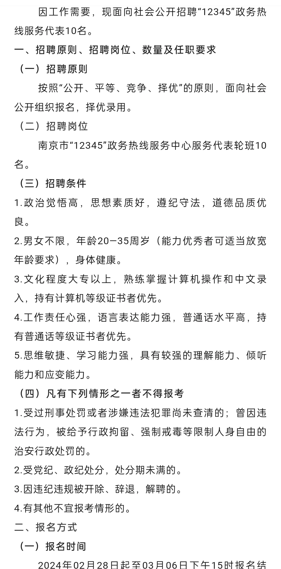>南京市“12345”政务热线服务代表招聘