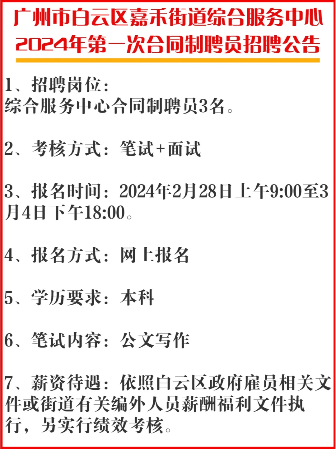 7、薪资待遇:依照白云区政府雇员相关文件或街道有关编外人员薪酬福利文件执行,另实行绩效考核。