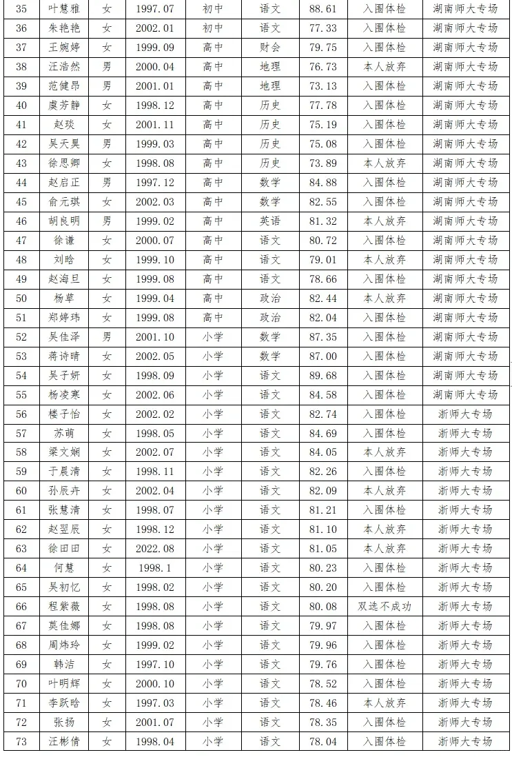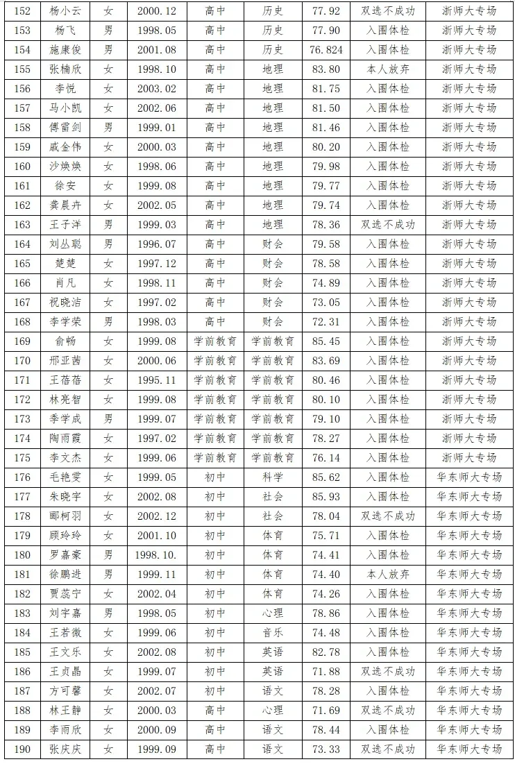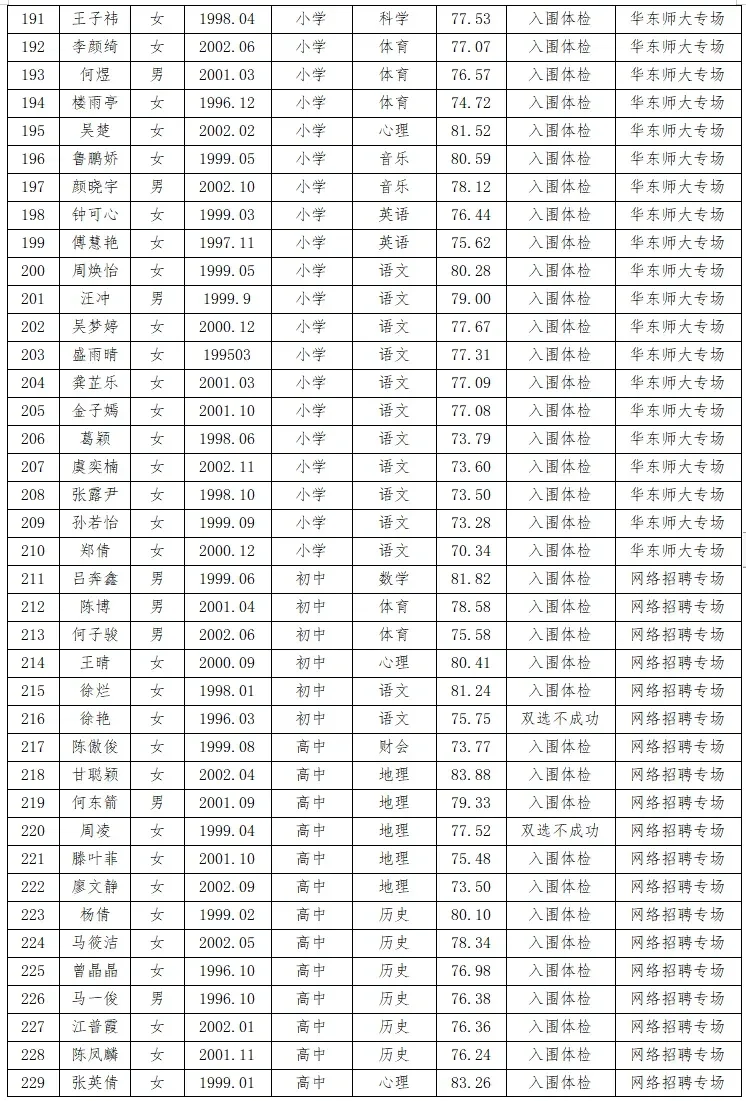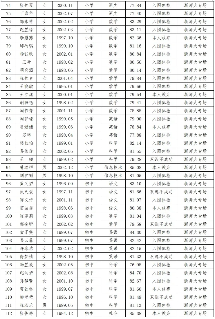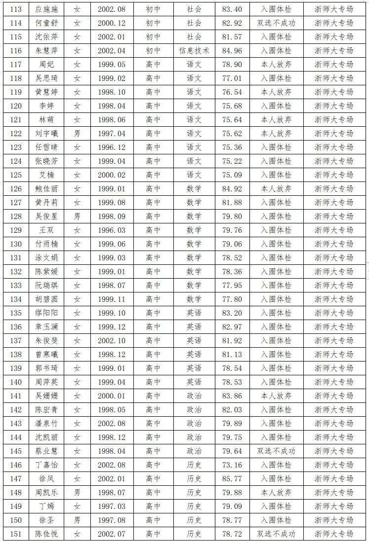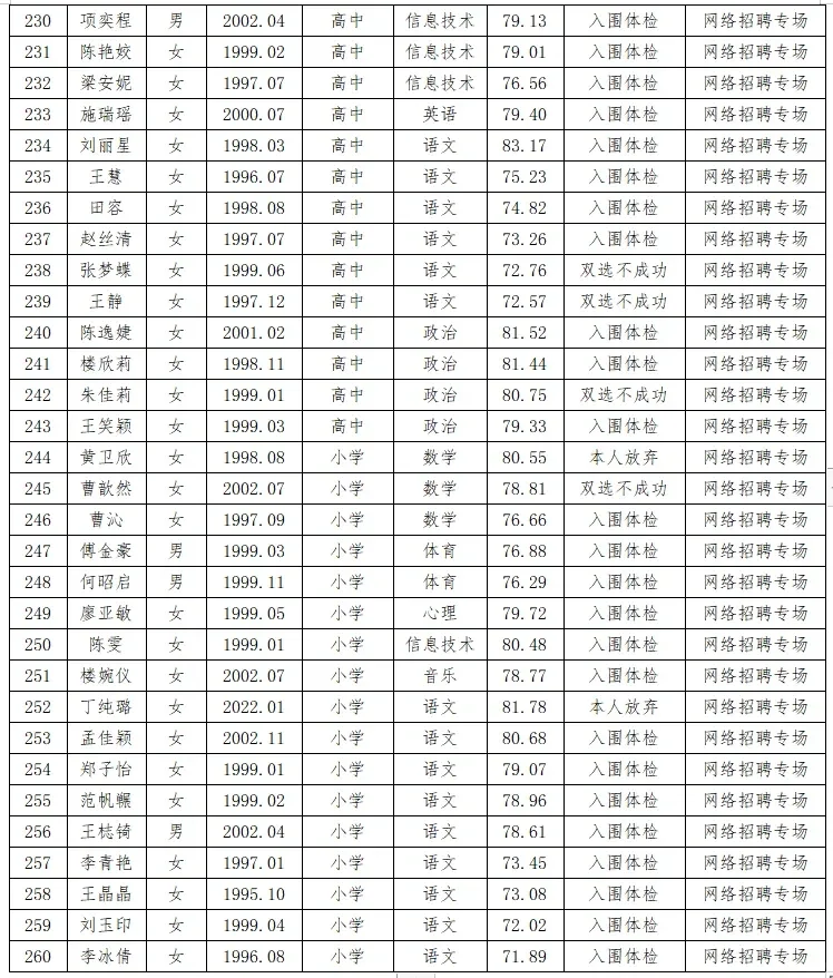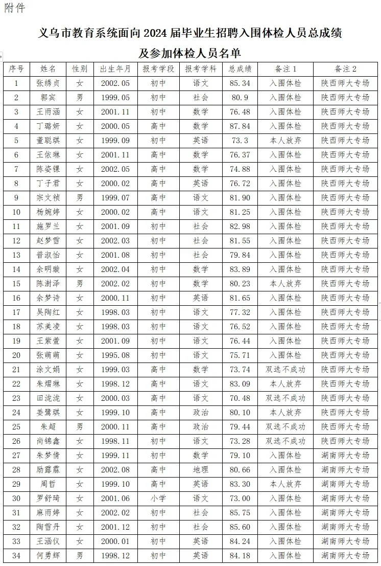 >义乌市提前批招聘编制教师总成绩及拟录用