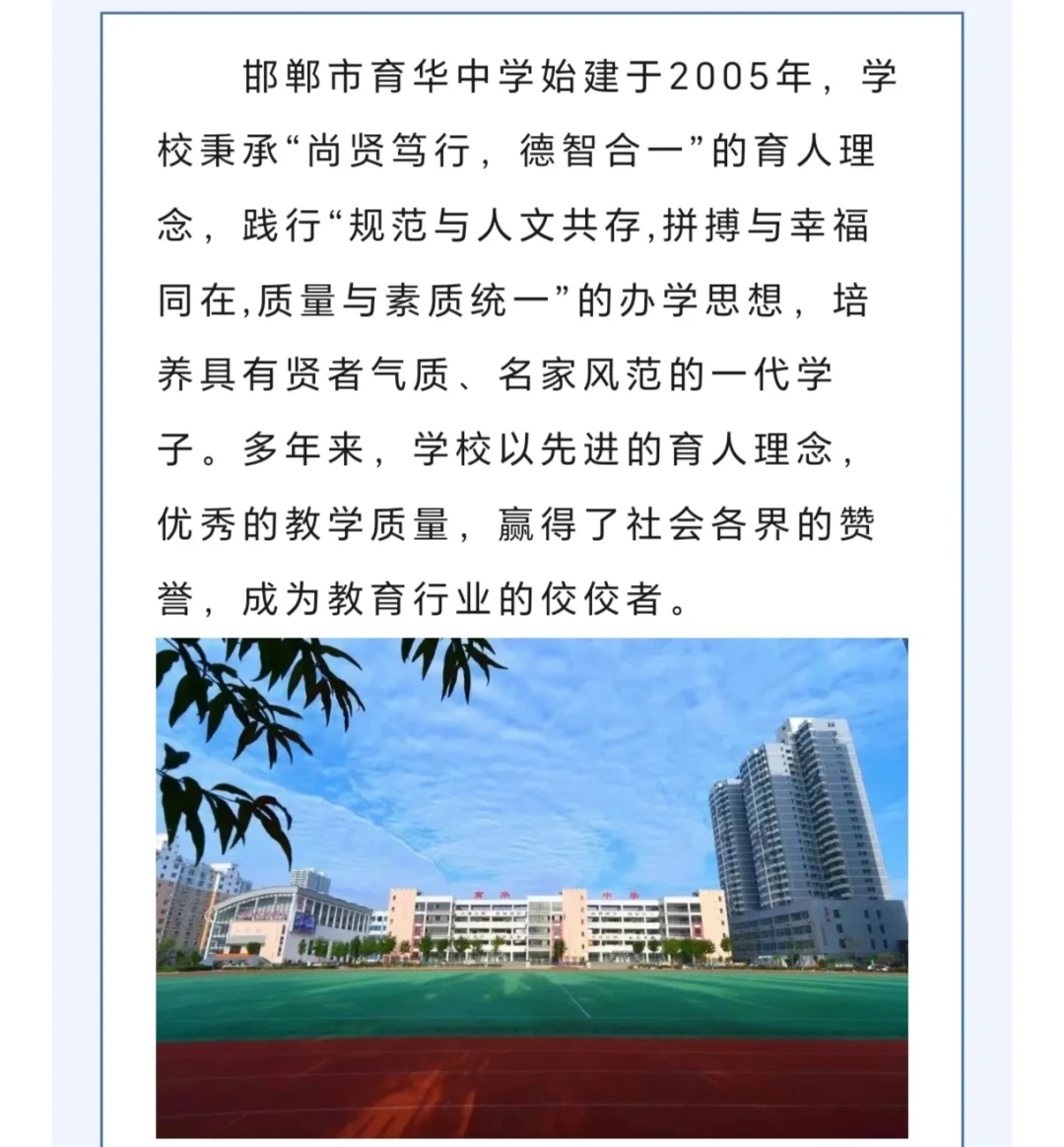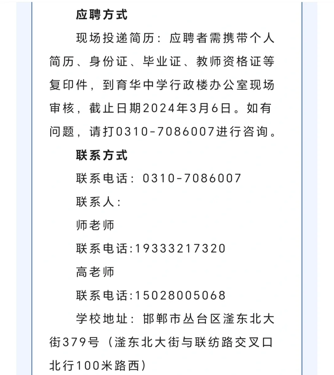 邯郸市育华中学2024年招聘48人启事