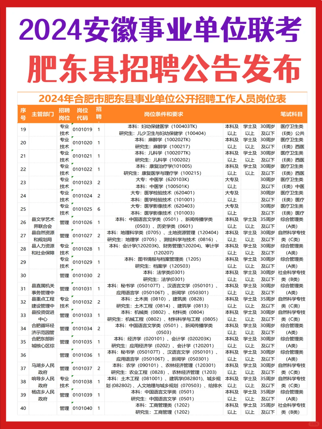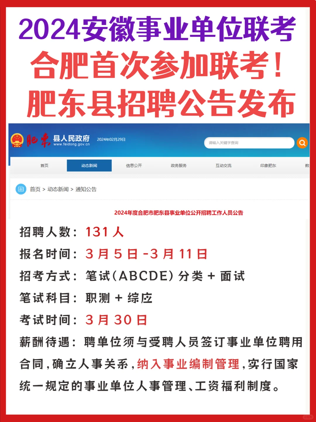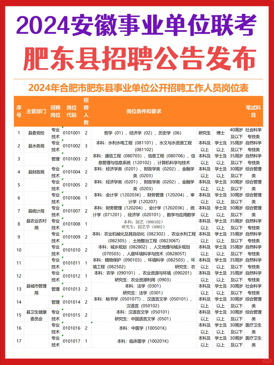 肥东市事业编招聘131人!瑶海、庐阳、庐江县各有招聘!