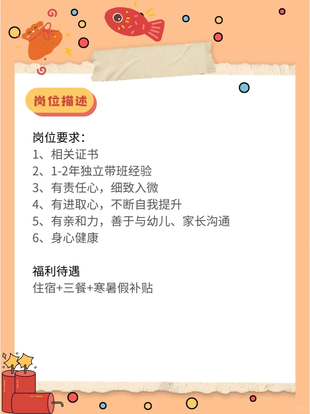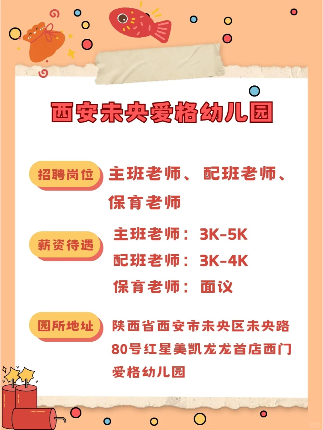 >西安市未央区幼儿园招聘主班、配班、保育员