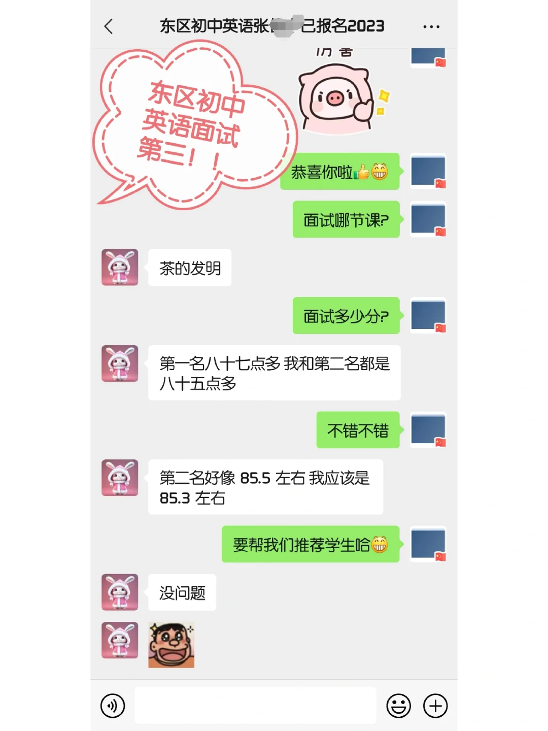👍👍恭喜宁宁(东区初中英语)面试全区第三!👍[黄金薯R][强]85.3分强势上岸[微笑R]碰到了老师练过的原题!!再次恭喜👍👍