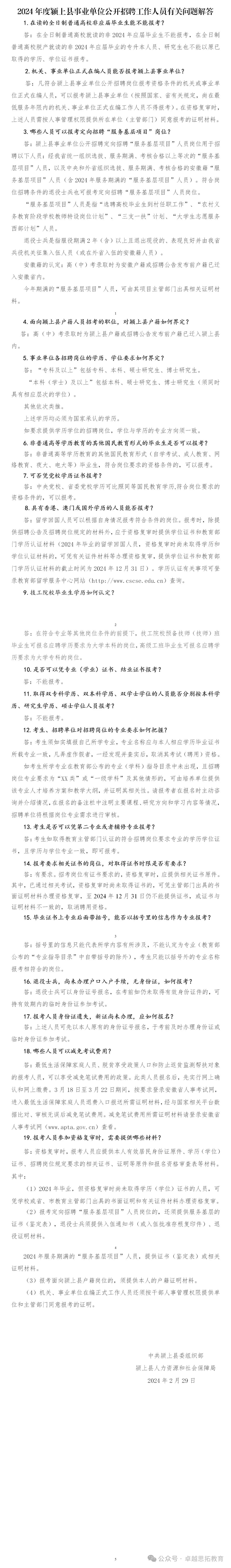 附件2:2024年度颍上县事业单位公开招聘工作人员有关问题解答