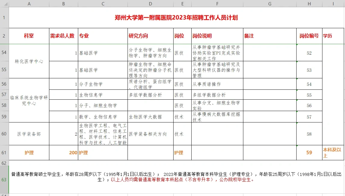 郑州大学第一附属医院2023年公开招聘护士200人 报名时间:2023年7月20日至2023年7月22日17:30,后勤硕士学历,护士全日制统招学历即可!