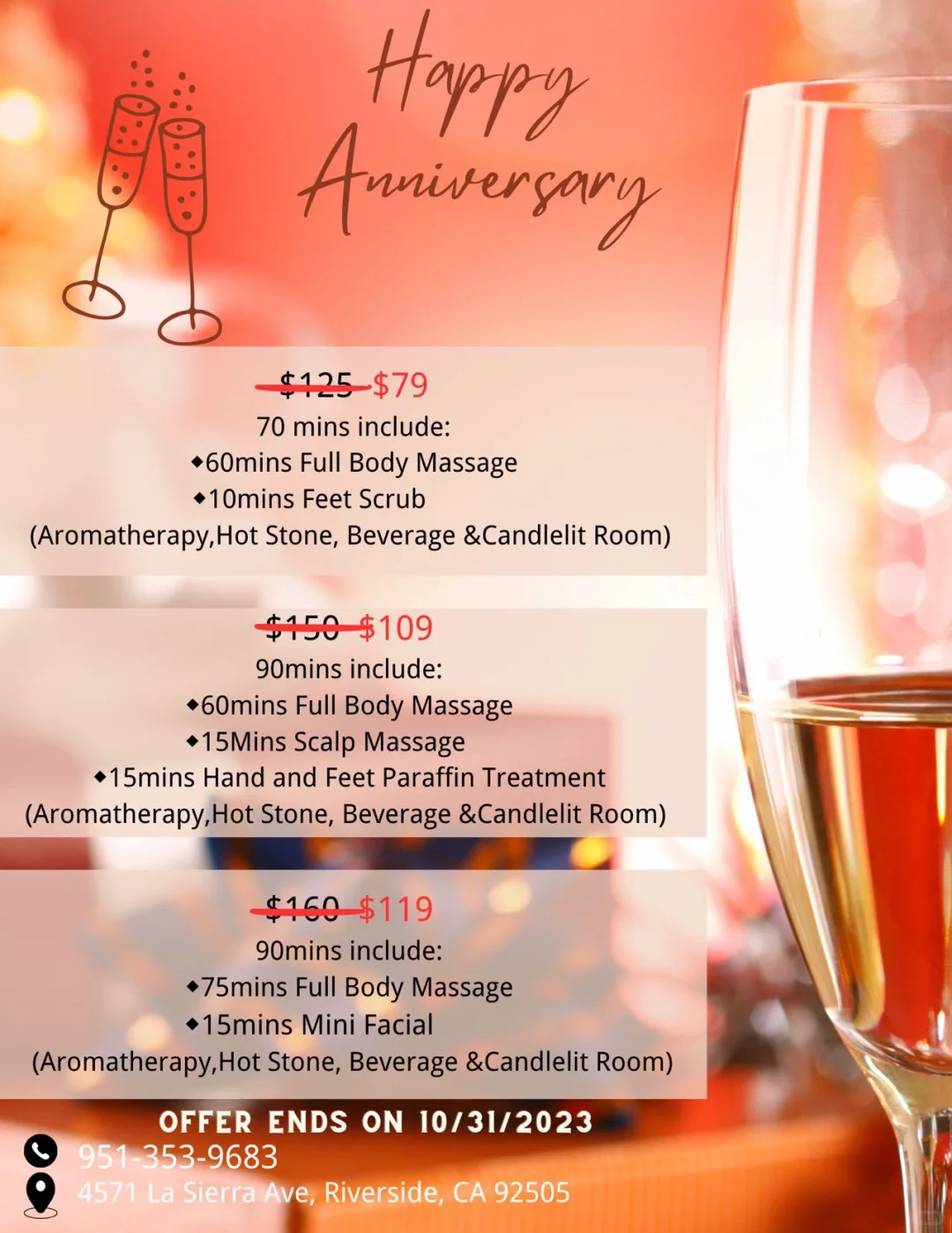 按摩纪念日套餐终于有了 加州东区riverside按摩店推纪念日活动啦 除了纪念日套餐,还有其他活动 踩背,精油按摩,热石,经络推油,淋巴排毒,头疗,足疗,肩颈都有……太多了,可以预约9513539683 Tao of Massage (riverside) 4571 La Sierra Ave, Riverside, CA 92505 #按摩spa #riverside #泰式按摩 #东谷按摩 #按摩招聘 |