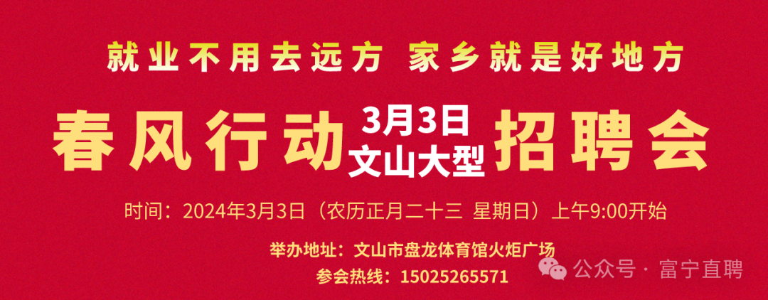 详情可登录富宁直聘、富宁招聘网、富宁人才网