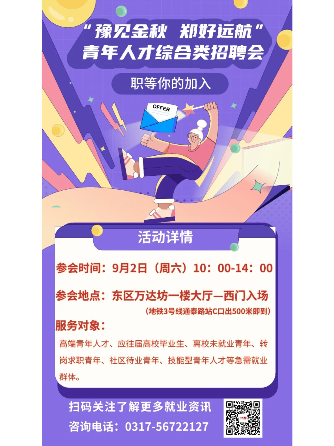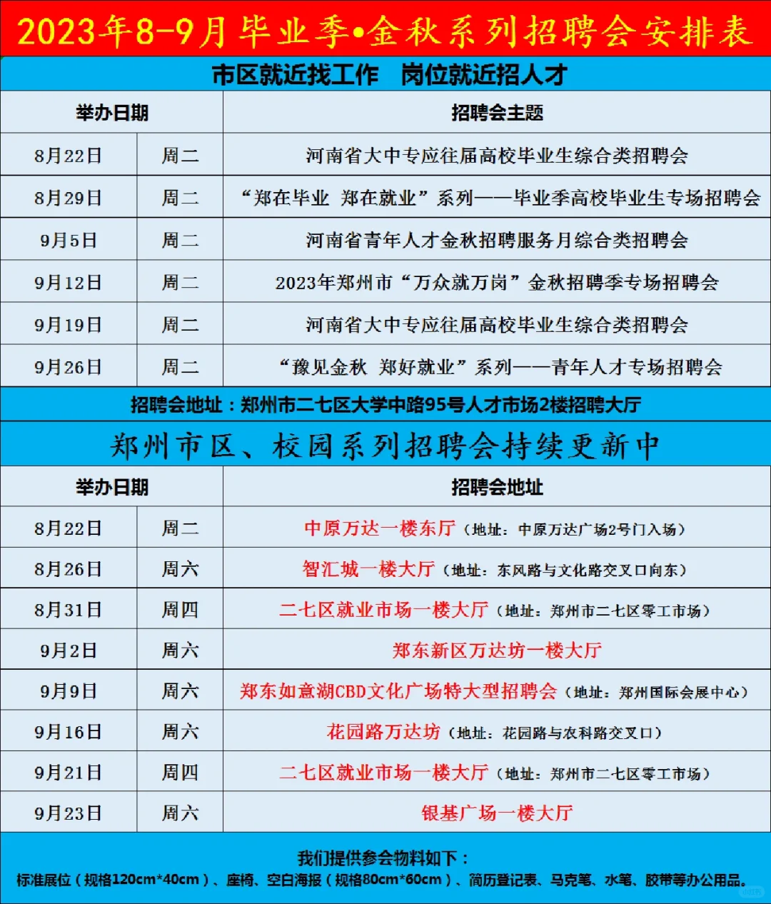 9月9号(周六)郑州CBD如意湖广场特大招聘(三百名企,万人规模)