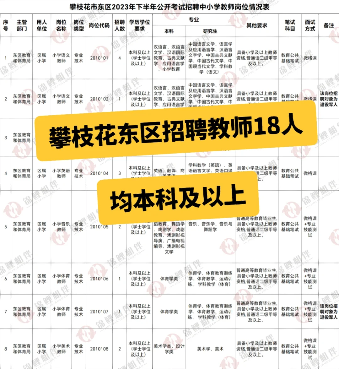 23下四川公招!攀枝花东区公开招聘教师18人