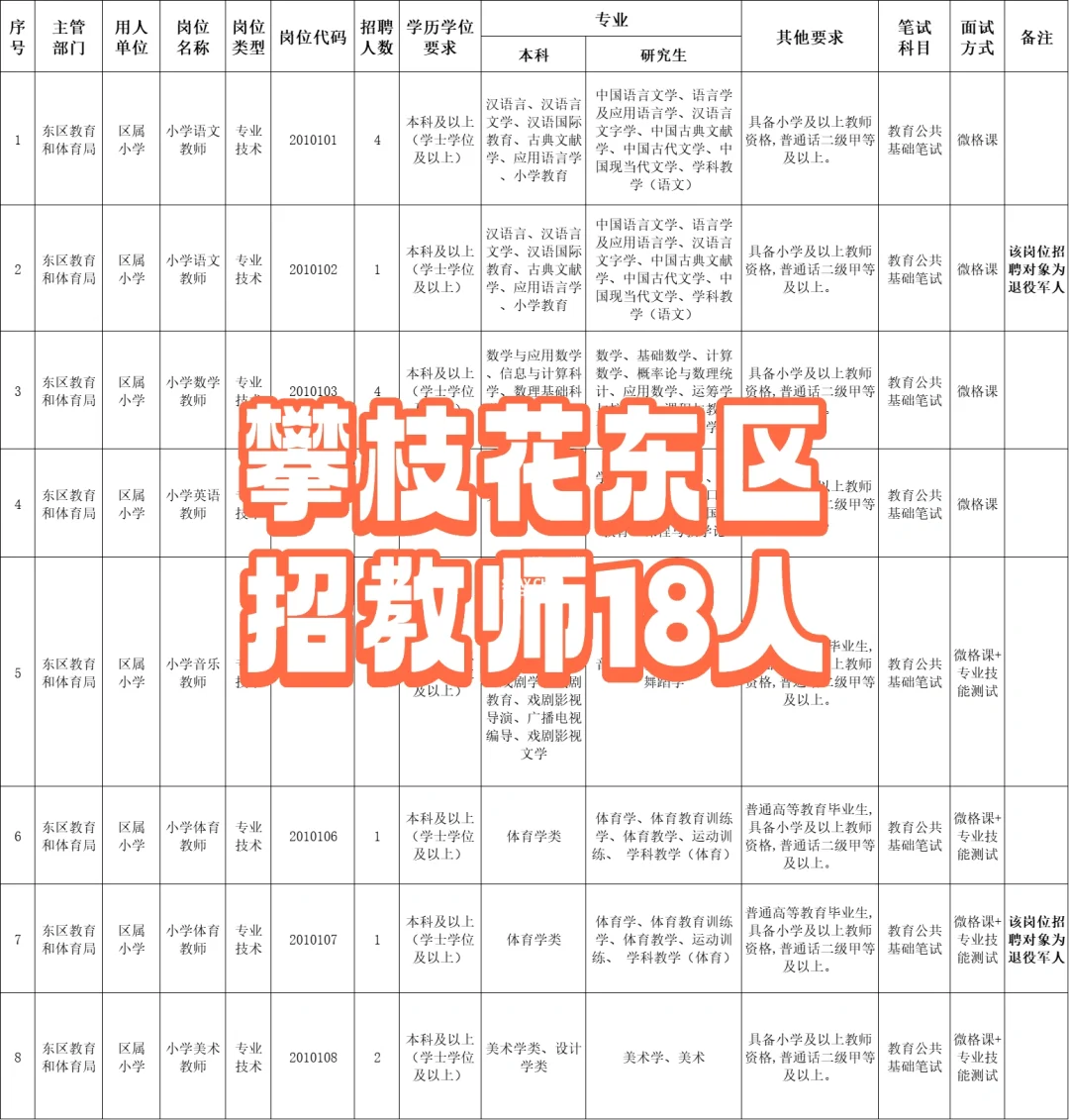 新出‼️攀枝花东区招教师18人,全是小学岗