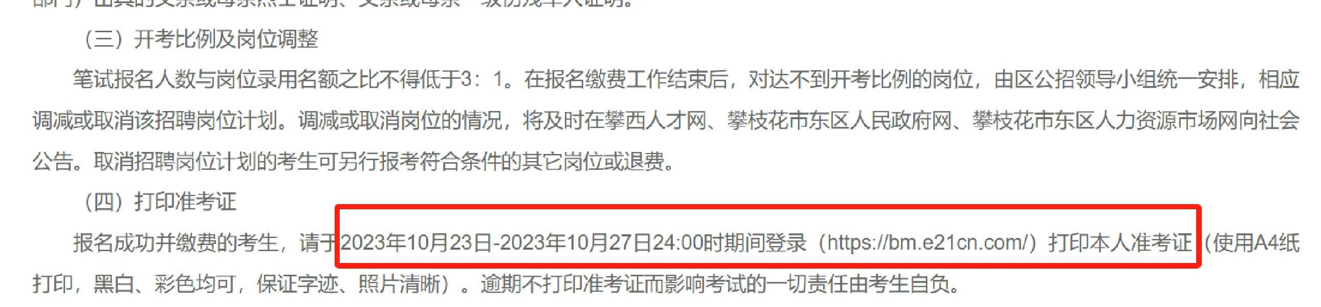 4️⃣ 打印准考证时间:2023年10月23日-2023年10月27日24:00时