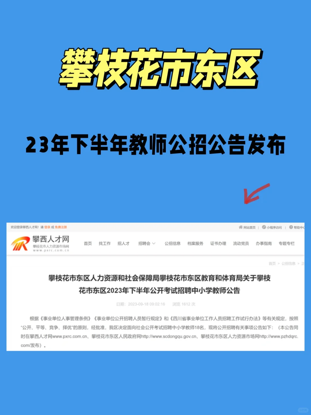教师岗18人!攀枝花市东区发布教师公招公告!