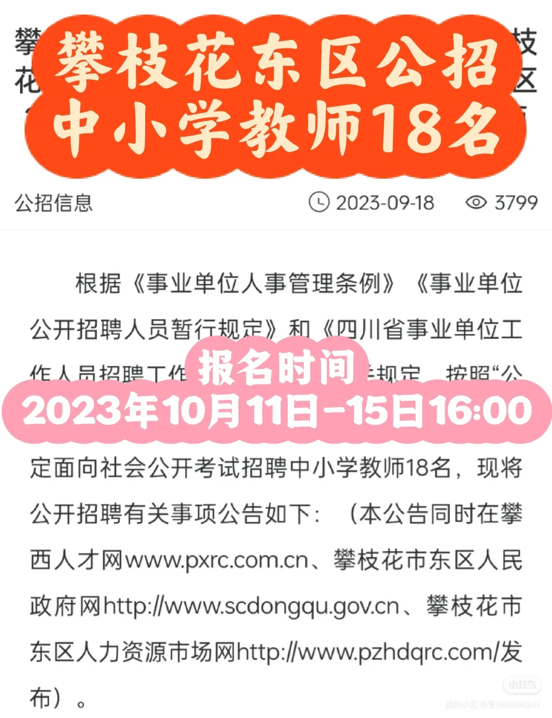 新出‼️攀枝花东区招教师18人,全是小学岗
