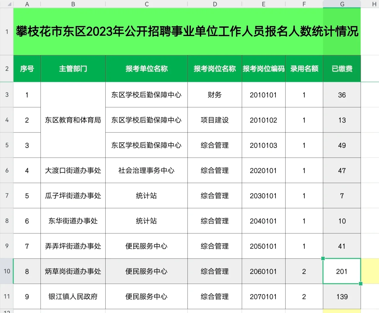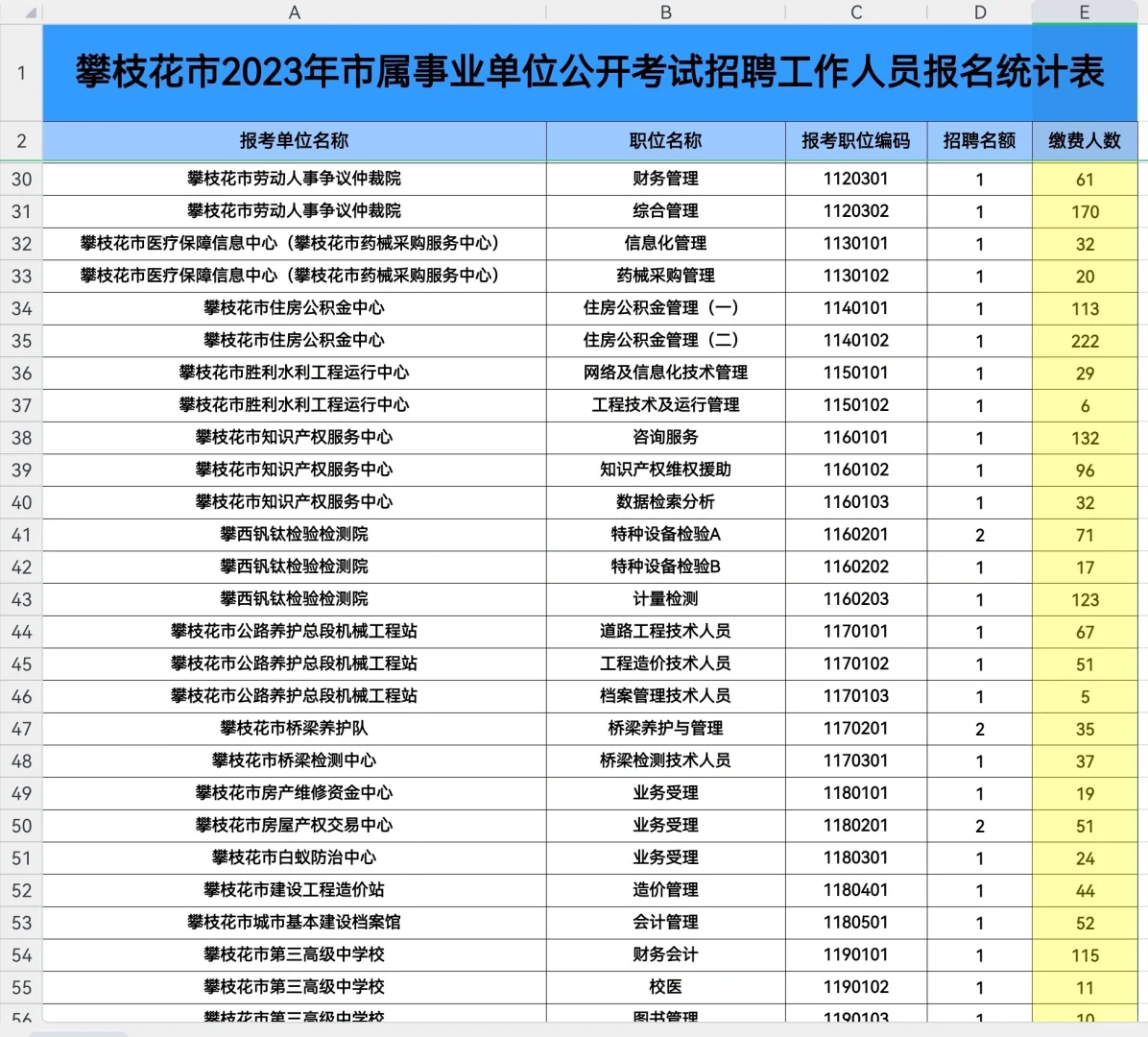 🌈攀枝花东区事业单位报名缴费人数543人,最大竞争1:100.5,