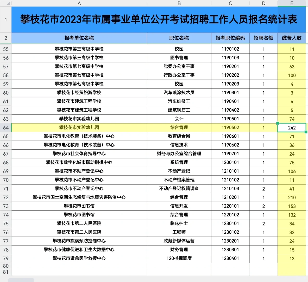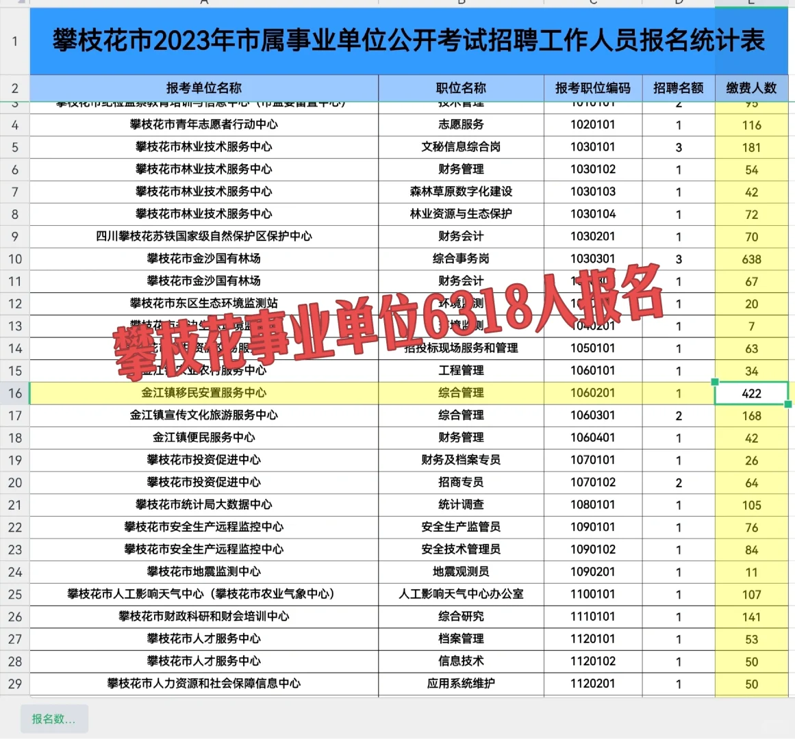 🌈2023攀枝花市属事业单位报名缴费人数5975人,最大竞争比1:422,