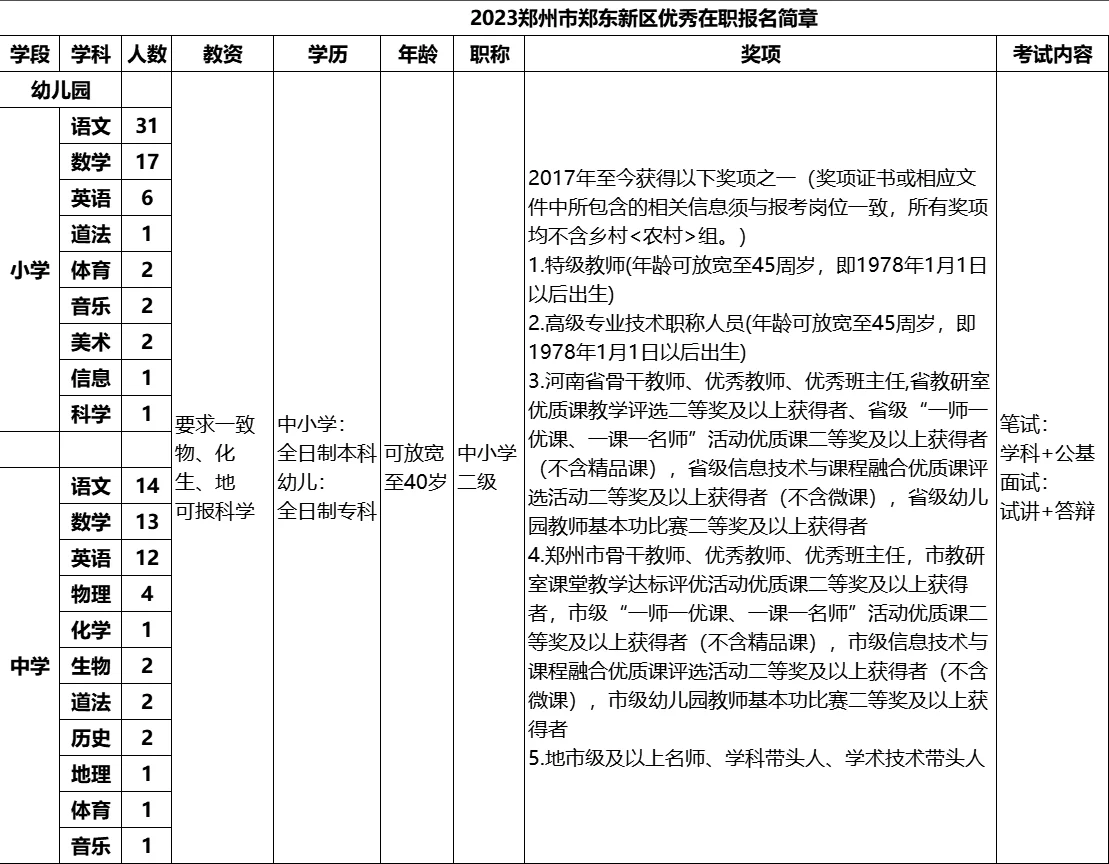 『建议收藏』23郑东新区考情分析及公告简表 郑东新区,隶属郑州市,在行政上分别属于金水区、管城回族区、中牟县,位于郑州市主城区东部,管理范围西起中州大道、东到万三公路、北至黄河、南达陇海铁路,规划控制面积370平方千米,管辖面积260平方千米。截至2021年末,全区常住人口96.02万人。郑东新区采取组团发展,将最初的150平方千米规划区域划分为CBD(中央商务区)、龙湖地区、商住物流区、龙子湖高校园区、高科技园区和经济技术开发区等若干组团。 郑东新区涵盖多所优秀的知名校区(以下排名不分先后) 1、聚源路小学 2、康平小学 3、郑东实验小学 4、郑东新区外国语学校 5、郑东新区昆丽河小学 6、众意路小学 7、郑东新区春华学校 8、郑州市第八十六中学 9、郑州市第九十六中学 『23年东区题型分析』 单选:每小题1.5分,共30分 不定项:每小题2分,共20分 综合分析题:共2题,共20分 综合写作题:1题 30分 『总结』 值得一提的是,东区近两年考试公基和教基分开考试,考试难度增加了不少,所以对东区整体作出评价的话: 东区具有不俗薪资待遇水平:★★★★☆ 东区老师的下一代教育起点:★★★★☆ 炙手可热的地区之一,备考难度:★★★★★ 因此,总体来讲,东区推荐指数:★★★★★ #河南招教 #教师招聘 #郑东新区招教 |