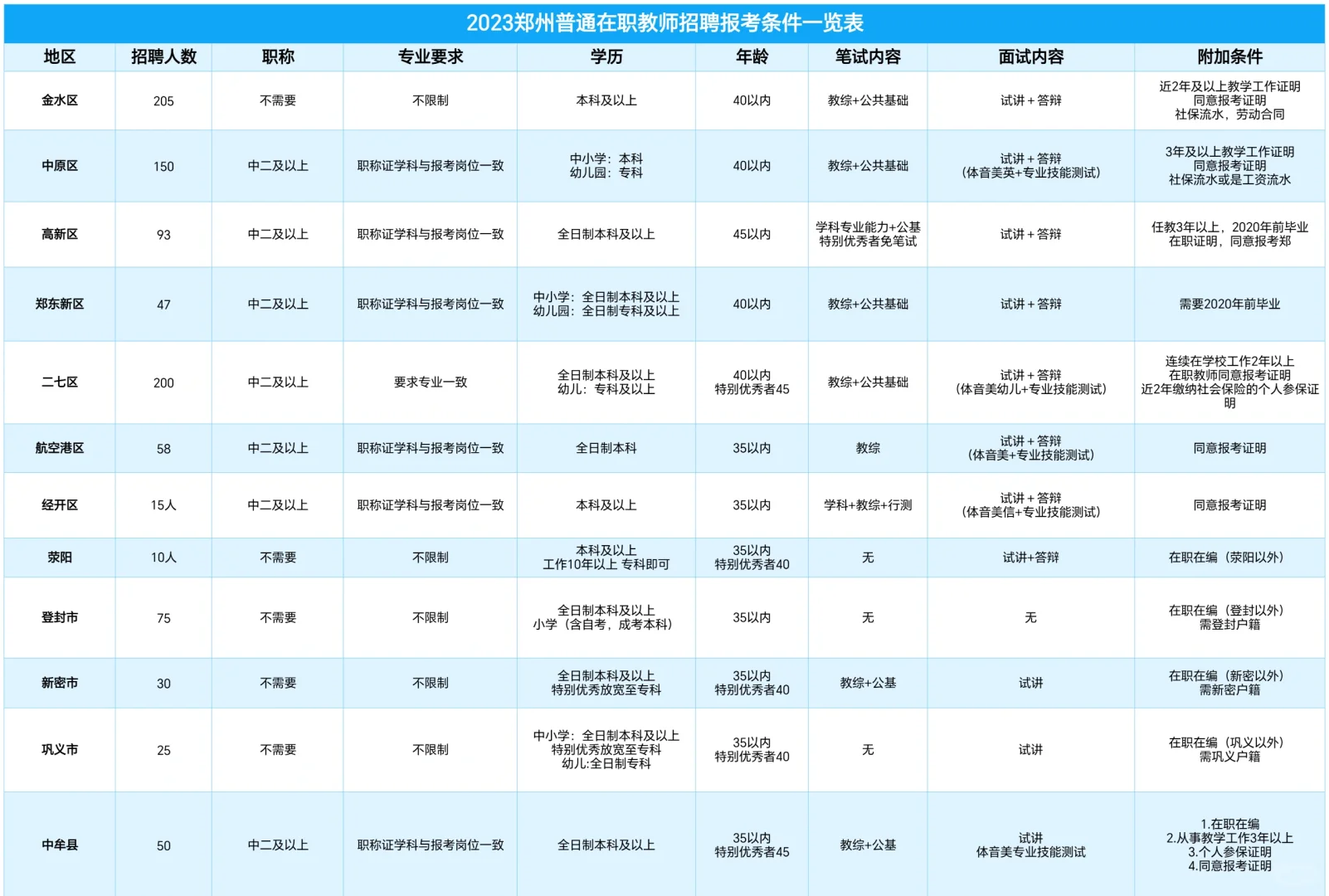 需要职称的区:中原区 高新区 东区 二七区 港区 经开区 中牟县 其余的条件,比如需要教课2-3年,或者是需要2020年前毕业等等,条件整体来说还行。有疑问可以留言,我会第一时间解答