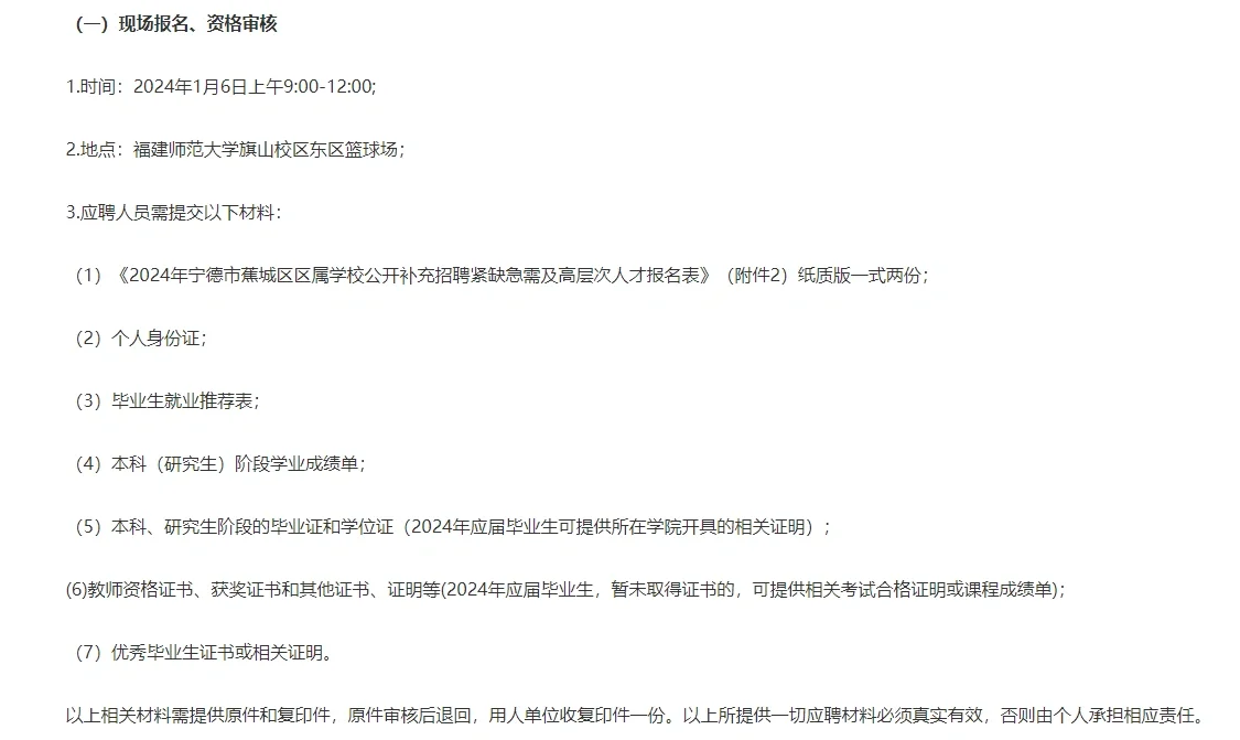 宁德蕉城区教育局公开补充教师12名