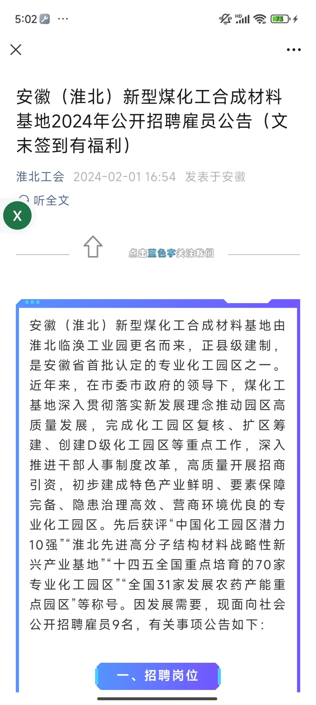 淮北煤化工基地2024年招聘 安徽(淮北)新型煤化工合成材料基地由淮北临涣工业园更名而来,正县级建制,是安徽省首批认定的专业化工园区之一。近年来,在市委市政府的领导下,煤化工基地深入贯彻落实新发展理念推动园区高质量发展,完成化工园区复核、扩区筹建、创建D级化工园区等重点工作,深入推进干部人事制度改革,高质量开展招商引资,初步建成特色产业鲜明、要素保障完备、隐患治理高效、营商环境优良的专业化工园区。先后获评“中国化工园区潜力10强”“淮北先进高分子结构材料战略性新兴产业基地”“十四五全国重点培育的70家专业化工园区”“全国31家发展农药产能重点园区”等称号。因发展需要,现面向社会公开招聘雇员9名,有关事项公告如下: |