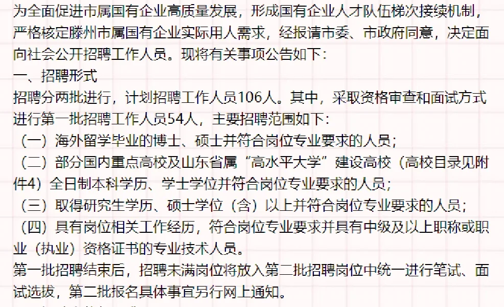 枣庄滕州市属国有企业公开招聘公告