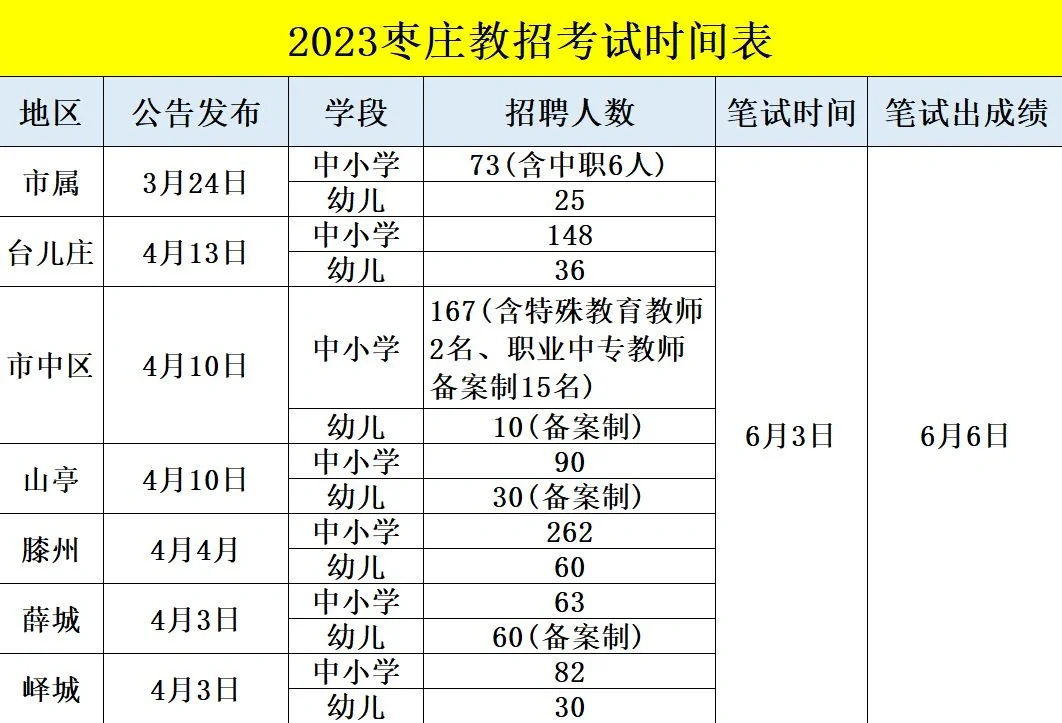 🍊枣庄23年教招是统考,出公告时间距离考试两个月左右,笔试时间为6月3日,笔试出成绩6月6日