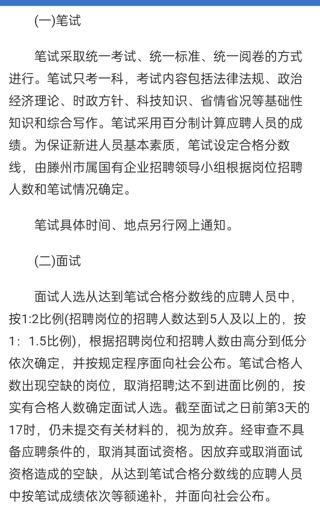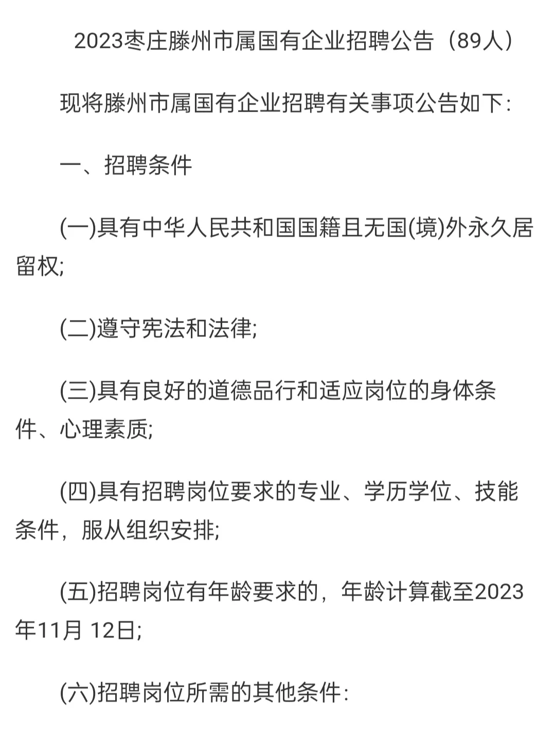 滕州国企招聘89人,报名时间23年11月14日9点—11月18日16点,笔试内容法律法规,政治经济理论,时政方针,科技知识,省情省况等基础性知识和综合写作,面试结构化面试,需要资料的可踢