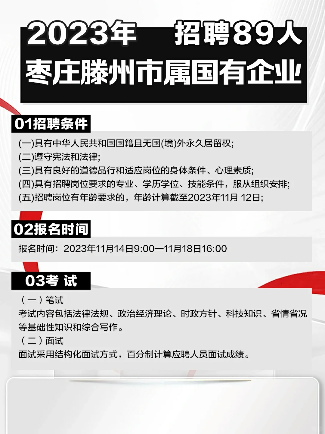 2023年枣庄滕州市属国有企业招聘公告(89人)