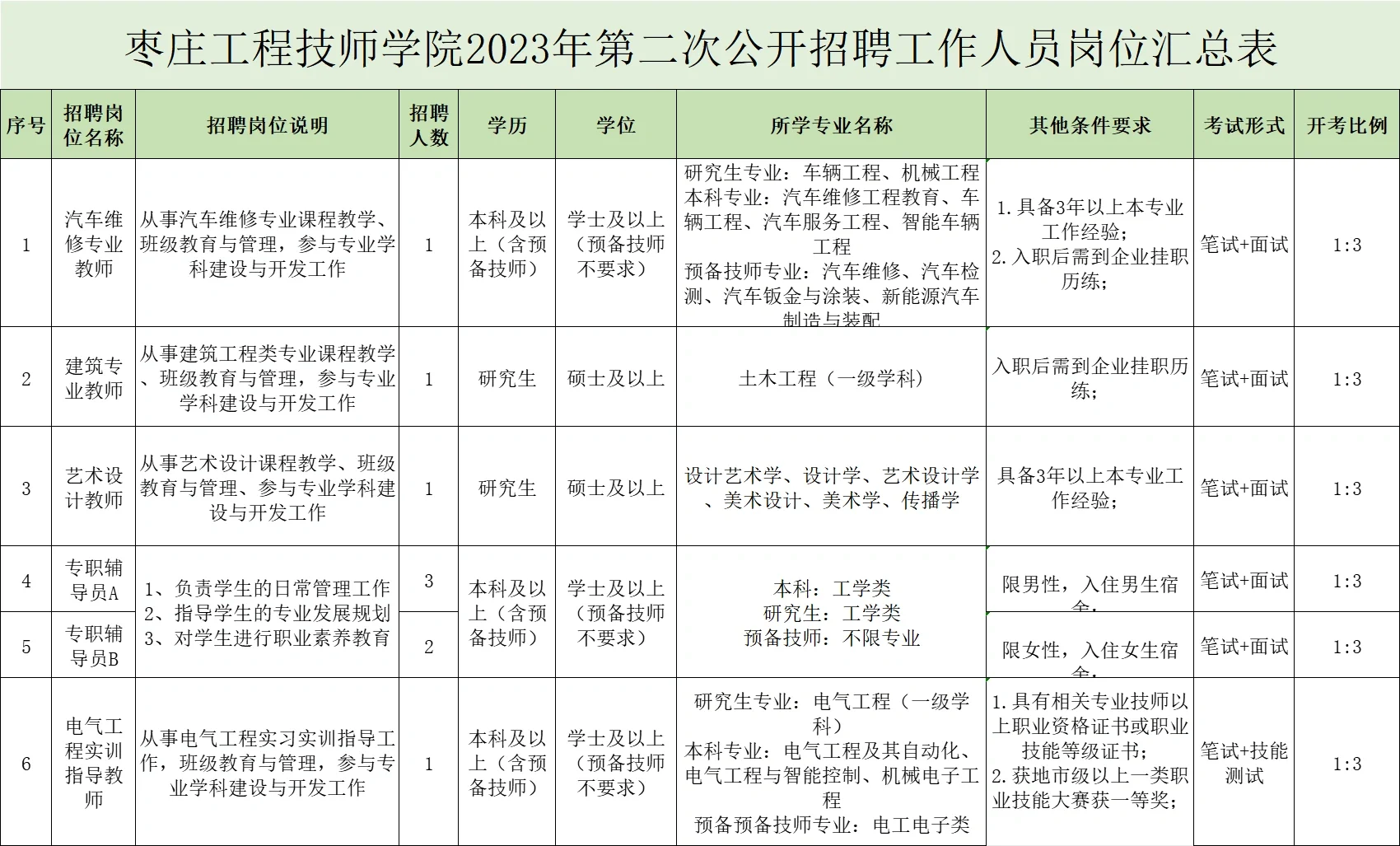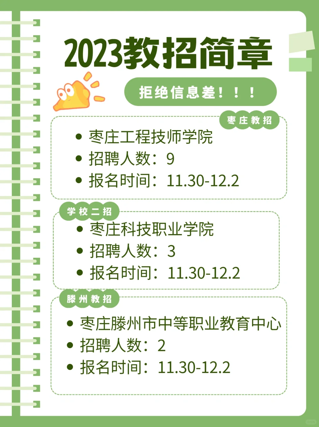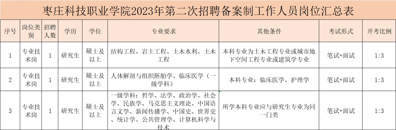 [二R]枣庄科技职业学院二招,招3人,硕士研究生,笔试➕面试,报名时间2023年11月30日9:00-12月2日16:00[星R]