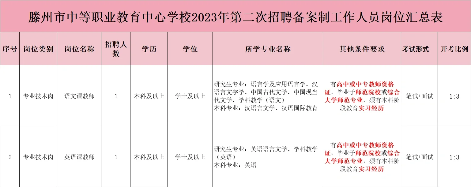 [三R]枣庄滕州市中等职业教育中心学校二招,招2人,本科及以上,笔试➕面试,报名时间2023年11月30日9:00-12月2日16:00[烟花R]