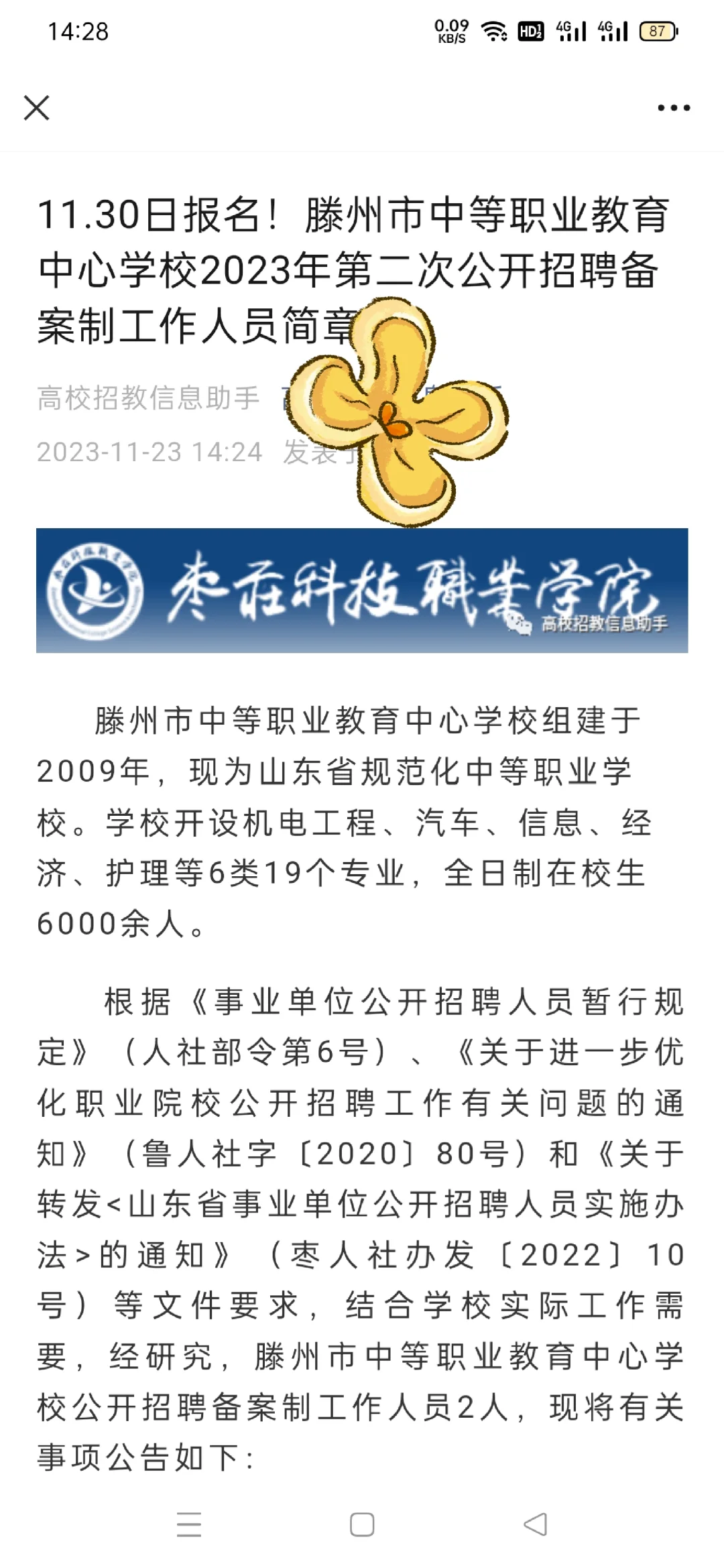 滕州市中等职业教育中心学校2023年第二次公开招聘备案制工作人员简章!