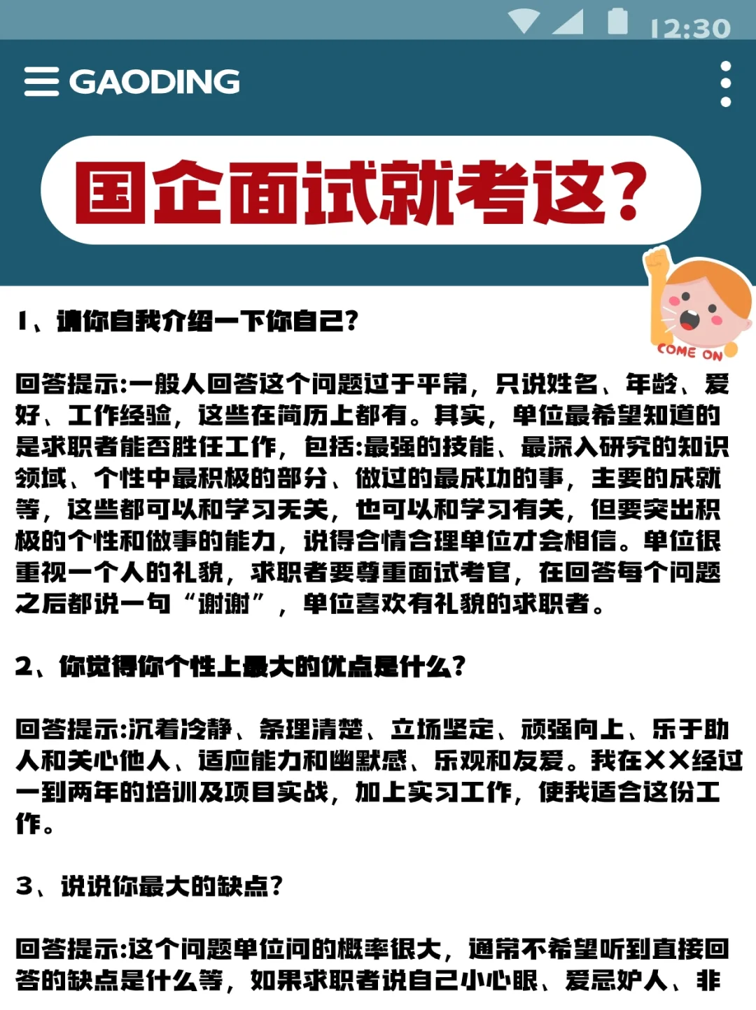 原来国企面试就考这?稳了稳了