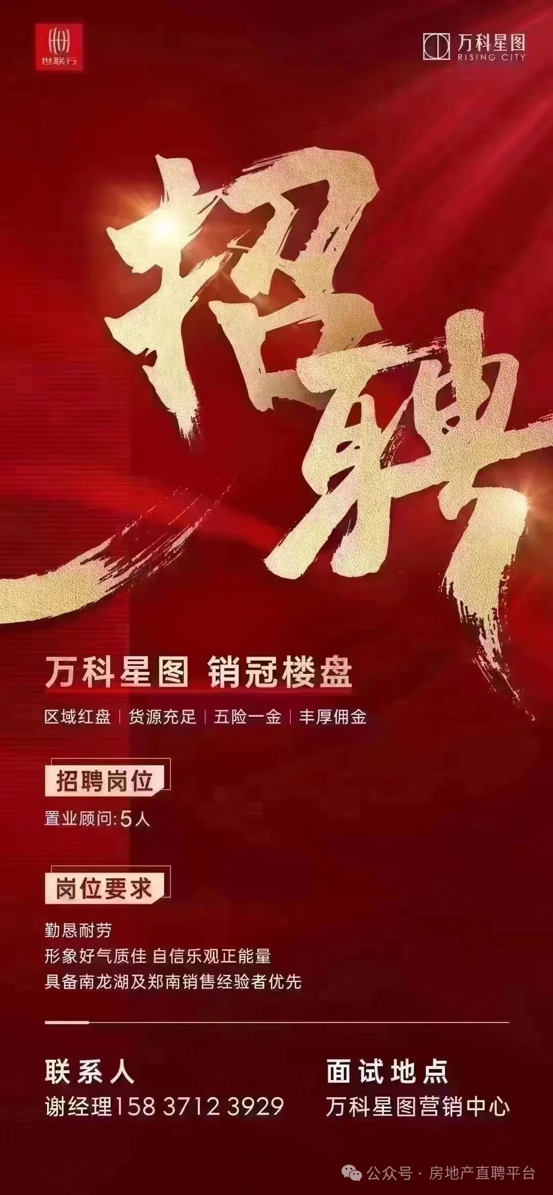 面试地址:郑州市二七区大学路右江路交叉口东500米万科大都会售楼部