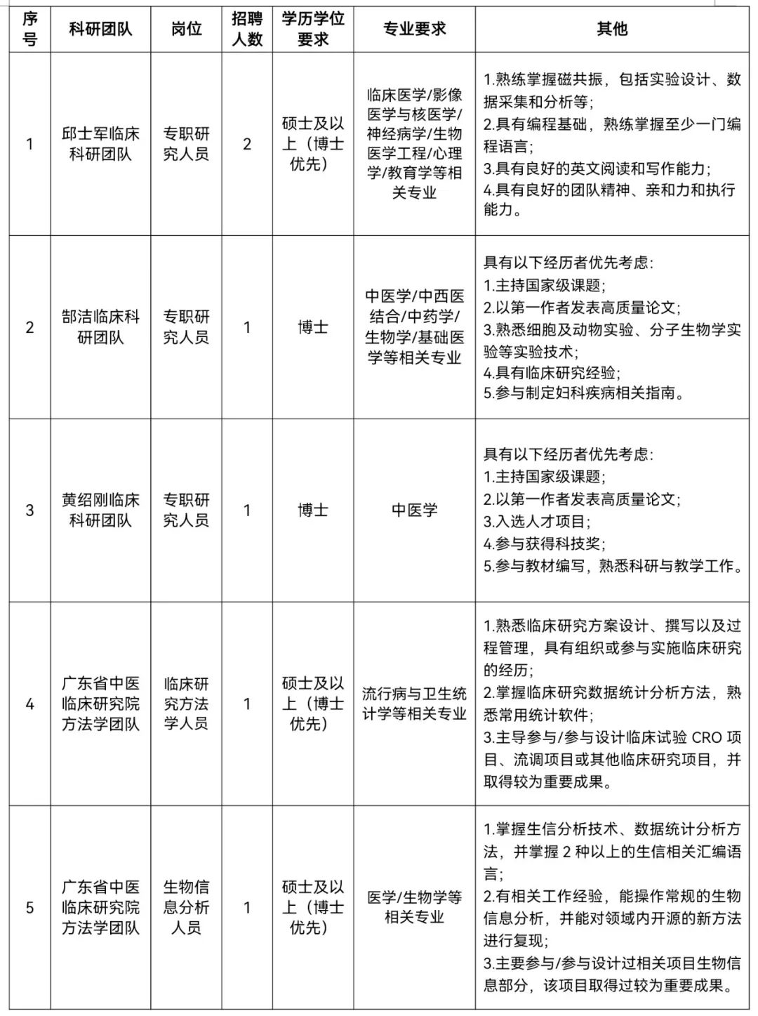 广州中医药大学第一附属医院2024年招聘公告(专职科研岗位)