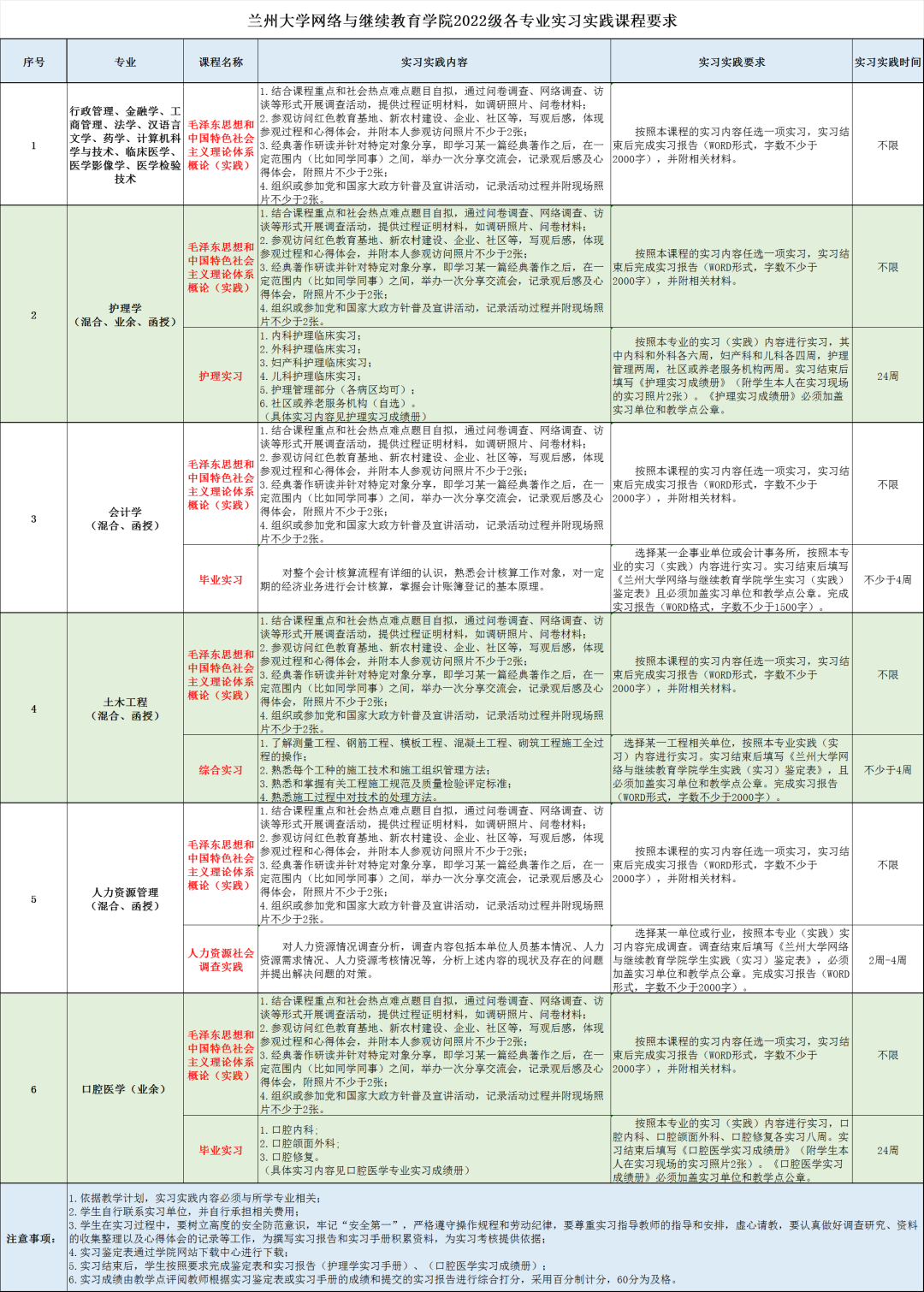 实习实践课程要求的通知