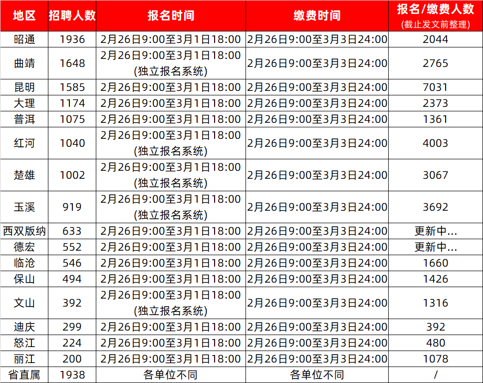 | 楚雄 | 2月26日-3月1日 | http://rsj.cxz.gov.cn/ |