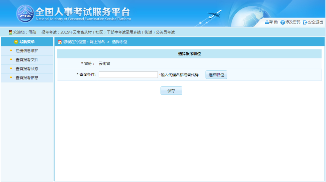 点击“选择职位”选项,可以跳转到选择报考职位界面,如下图所示: