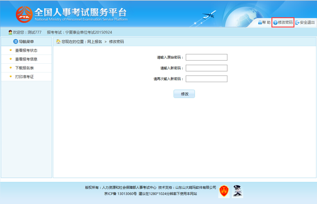 在该界面可以对考生的登录密码进行修改。