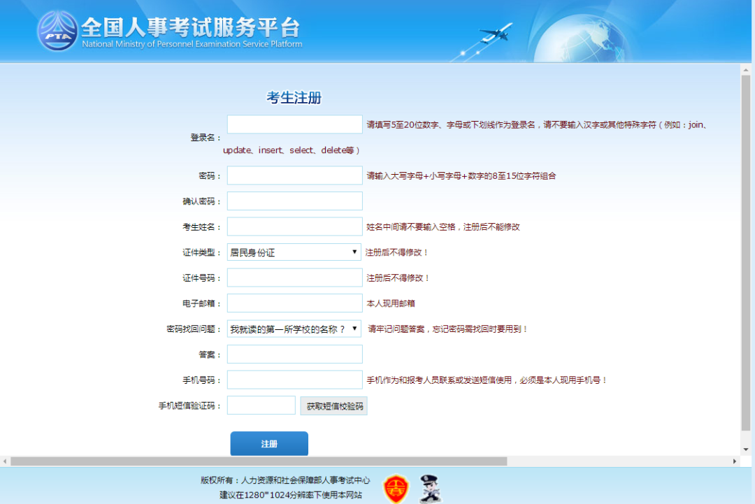 点击“注册”按钮,进入考生注册页面,如下图所示: