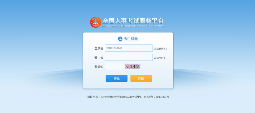 考生访问发布的报名系统网址,进入登录界面,如下图所示: