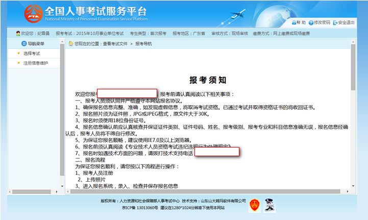 考生登录系统后,上传照片完成后进入报考须知阅读页面,如下图所示: