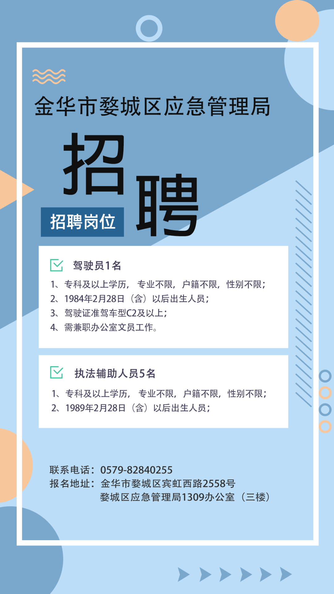 >招人啦!婺城区应急管理局招6人,快来报名!
