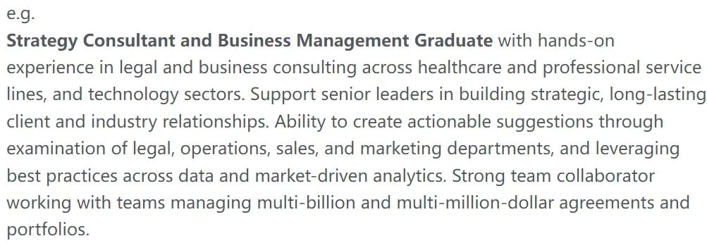 Summary有点像更加高级、正式版的自我介绍。这一部分就像摘要,用来清晰、简洁、明了地表达“我会什么”、“我能带来什么价值”。